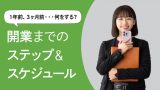 これらが決まってくると、必要な届出や手続きの準備、賃貸オフィスや店舗の物件探し、人員確保のための準備など、様々な行動ができるようになってきます。一気にやることが出てきて慌ててしまいそうになりますが、ひとつひとつ着手しつつ、今のスケジュールで問題がないか定期的に相談できる人や場所があると安心です。